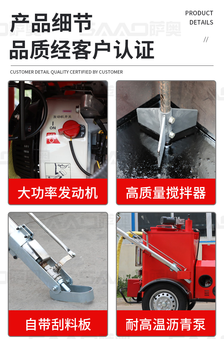 濟(jì)寧薩奧機(jī)械專注于路面養(yǎng)護(hù)機(jī)械研發(fā),60L-650L瀝青灌縫機(jī),道路灌縫機(jī),路面灌縫機(jī),灌縫機(jī)等系列設(shè)備生產(chǎn)廠家,質(zhì)量高、價(jià)格低.咨詢電話4008605689